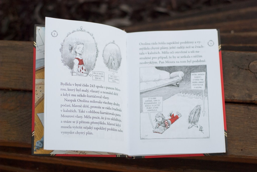 V knize je hodně ilustrací, tím pádem jsem neměla možnost zapojit kreativitu a představit si, jak asi vypadají postavy. Hodně ilustrací jsem dokázala zhodnotit a odhalit některé vlastnosti postav. Díky ilustracím jsem přišla na to, že je Otolína vážně vtipná.