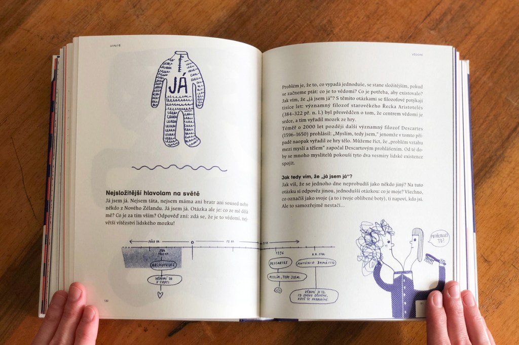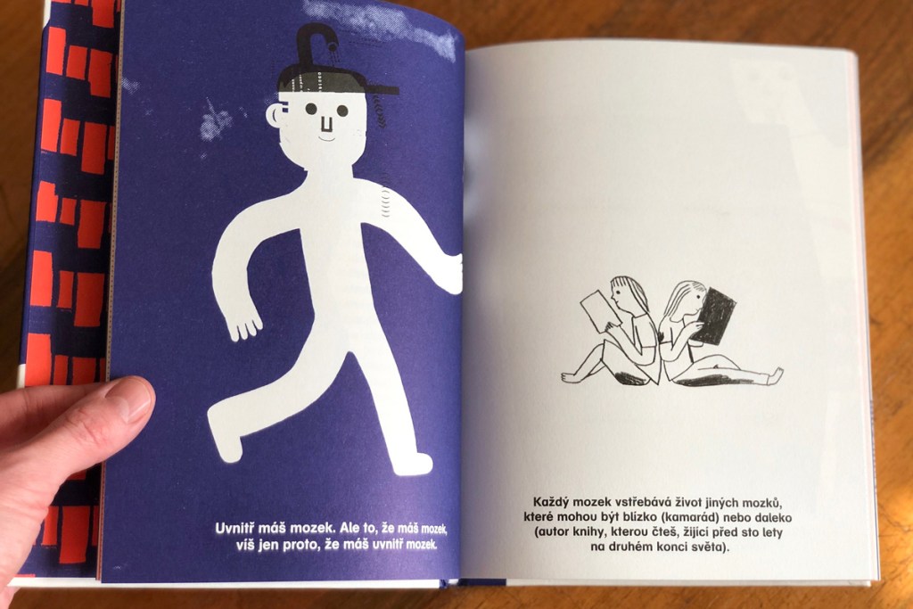 K těmto úsudkům přitom autorky nedospěly jen tak, lusknutím prsty. Kniha vznikala v rámci dialogu s interdisciplinárním týmem odborníků (neurovědců, psychologů a filosofů). Určitě si dovedete představit horu poznámek, různých verzí a variací, změn a oprav, nápadů využitých a zahozených, které za takovou prací stojí. Výsledkem tohoto bádání je nepopiratelná exaktnost při představování jednotlivých témat a také dominance současného, v mnoha oborech oblíbeného, neurovědeckého diskursu. Přesto však se autorkám krásně povedlo zachovat perspektivu dítěte, které je s to se divit a žasnout nad bohatostí lidské zkušenosti a také nad všemi turbulentními procesy v mozku, které se za ní skrývají. Povedlo se jim také psát a kreslit o různých aspektech mozkové činnosti současně s uvědomováním si historické (čili relativní) povahy veškerého vědeckého vědění. A to, co se mi osobně líbí snad nejvíc, je vyprávění z autorské pozice, která za každým vědeckým poznatkem nechá tušit určitý světonázor. Autorky se k jednomu světonázoru (nazvěme ho humanismem) vědomě přiklánějí a dávají tím hlas přesvědčení, podle kterého je každý člověk jedinečný s neopakovatelnými zkušenostmi: jedinečnost každého člověka je hodnotou sama o sobě.