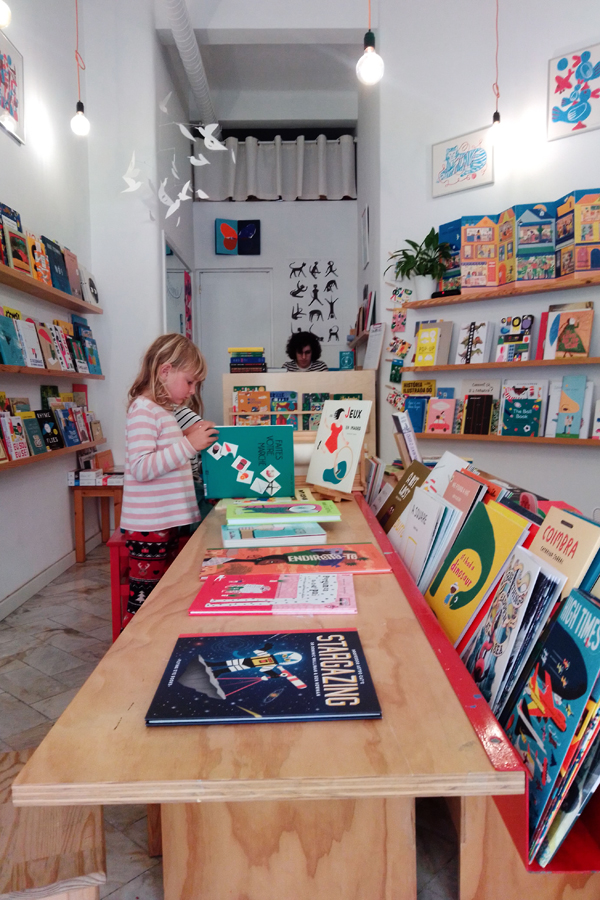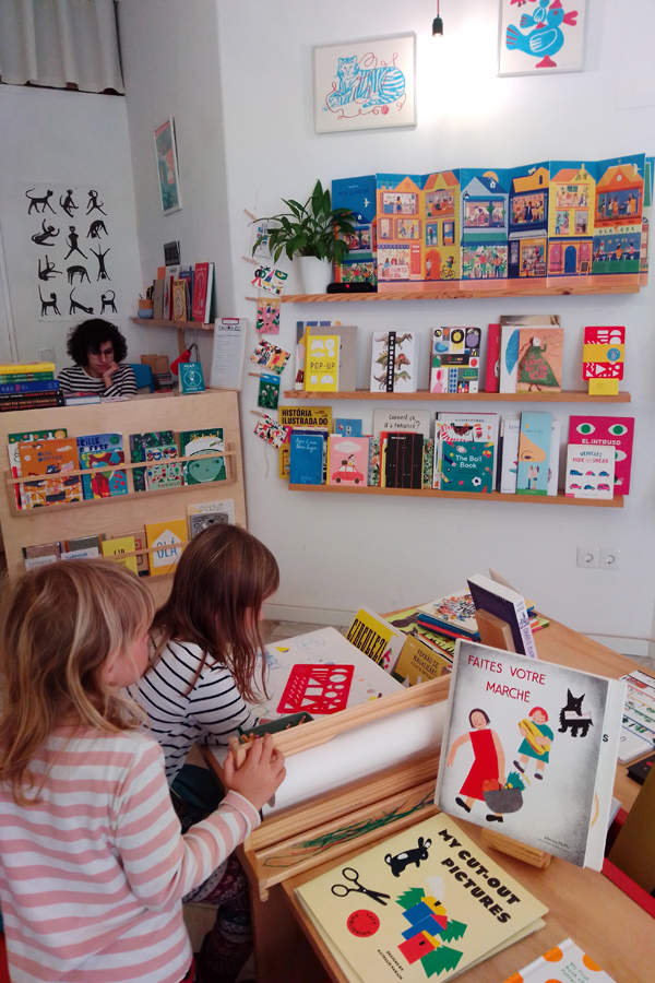 Návštěvu dětského knihkupectví It‘s a book jsem si jako pomyslnou třešničku na dortu nechala na poslední den našeho pobytu v Lisabonu. Knihkupectví před třemi lety otevřeli Joana Silva a António Alves, kteří už předtím dětské knihy sami sbírali. Proto nepřekvapí, že nabízené tituly jsou jeden vedle druhého malá umělecká díla. Prostor je možná ještě o chloupek menší než naše Dlouhá punčocha, přesto dává vyniknout všem nabízeným titulům. Je účelně vybavený dlouhým stolem, u kterého se pravidelně odehrávají tvůrčí workshopy pro děti pod vedením autorů a ilustrátorů dětských knih.