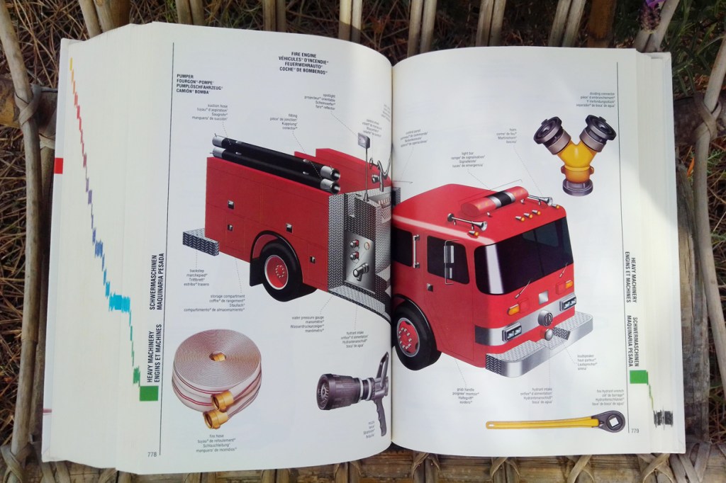 Oxford Visual Dictionary nás uchvátil detailními ilustracemi a ještě detailnějšími popisky všeho zobrazeného. Od žáby po atomovou elektrárnu. Může tak fungovat i jako všeobecná encyklopedie. Každé heslo tu najdete v angličtině, němčině, francouzštině a španělštině, což zase umožňuje všímat si podobností i odlišností mezi jednotlivými jazyky.