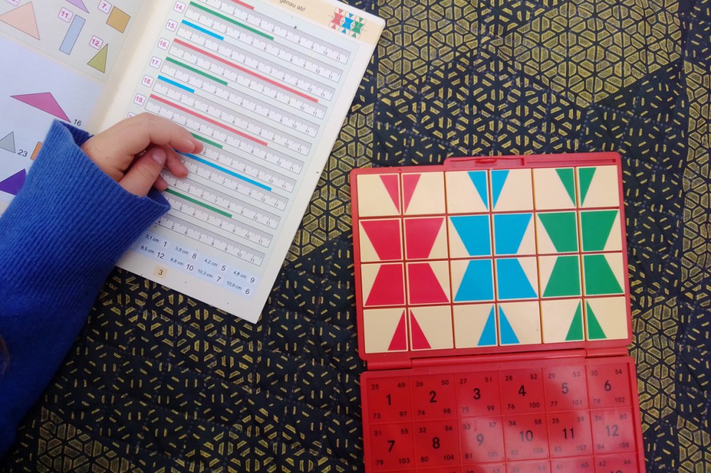 Na naší cestě jsme už několikrát byli hosty nebo pomocníky v rodinách s dětmi a inspirovali se tím, jak se ne/učí ostatní. V Montellá v Katalánsku jsme si dokonce vyzkoušeli jeden den v tamější úžasné komunitní škole Escola Ridolaina, kde jsme se mohli seznámit s mnoha novými pomůckami. Pár z nich jsme si potom pořídili, jiné jsme objevili náhodou při mnou oblíbených návštěvách knihkupectví.