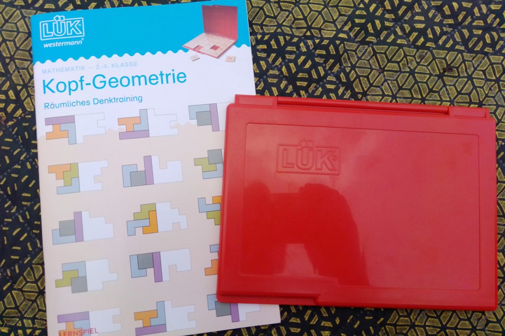 Velkým objevem byl pro mě LÜK. V Německu už po mnoho let pomáhá dětem s učivem napříč předměty, stačí si jen vybrat příslušný z desítek sešitků s úkoly, my jsme na zkoušku sáhli po několika matematických. Kostičky v krabičce, díky kterým snadno zjistíte, jestli jste zadání splnili správně, zůstávají pro všechny sešity stejné.