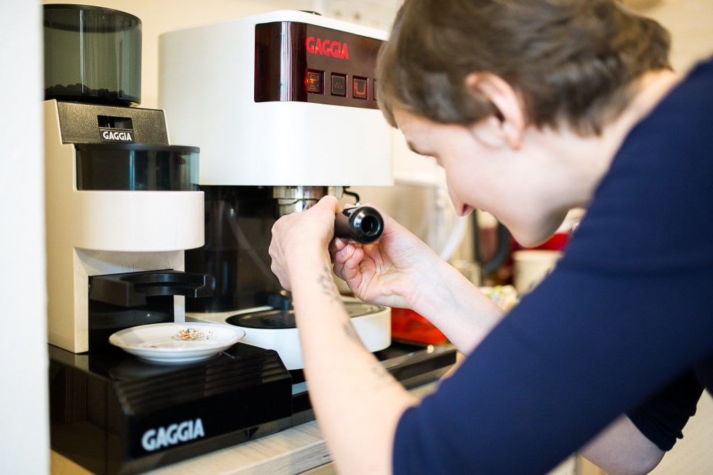 Datum otevření se rychle blížilo. Hanka z Papírek & Večírek se zhostila výzdoby výlohy, která se nám dodnes neokoukala, kamarád Lukáš se postaral o fóliové polepy. Petr z kavárny Naše věci se zasloužil o to, aby se Punčocha rozvoněla nejen knihami, ale i dobrou kávou. Trpělivě asistoval našim prvním pokusům o cappuccino na našem vintage kávovaru a dál pro nás míchá a praží speciální směs, kterou… prostě přijďte někdy ochutnat.
