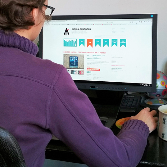 V takových chvílích byla nesmírně cenná každá pozitivní odezva, každá prodaná kniha, každý spokojený zákazník, který se za námi vrátil. Pomocnou ruku nám v tu dobu podalo Divadlo Polárka, v jehož vestibulu jsme mohly o víkendech prodávat. A vzpruha přicházela i odjinud – pokaždé, když jsme se podívaly na grafické návrhy, které pro nás od začátku vytváří Eva a Kuba ze Studia Upupaepop, měly jsme takovou radost a s novou chutí se pustily do další práce. A odbornost a trpělivost, s jakou s námi náš dvorní programátor Ondra Koupil probíral i ty nejbizarnější představy o fungování našeho nového e-shopu, byla prostě nedocenitelná.