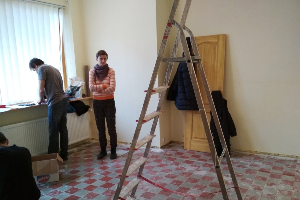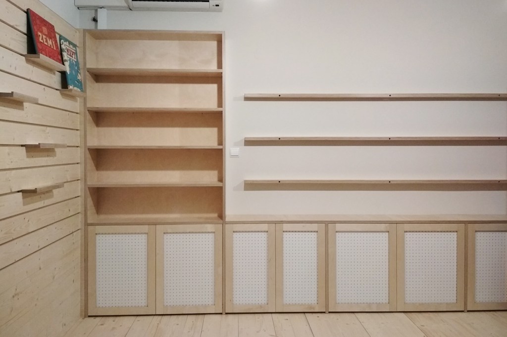 Vymyslet, jak maličký prostor přehledně a útulně zařídit, nebylo obtížné. To mě na práci architekta ostatně vždycky bavilo nejvíc. Ovšem najít někoho, kdo vám pomůže doladit detaily tak, aby vše opravdu fungovalo a pak to navíc precizně vyrobí, dá práci. Takové kontakty se v oboru vyvažují zlatem. Punčocha měla ale k dispozici opravdový rodinný „dream team“. Pod rukama mistra truhlářského Josefa, Zuzčina tatínka a Míly, jejího muže se bývalý kancelářský prostor rychle měnil k nepoznání. Záda nám jistil také Martin, můj manžel, který se ukázal být nejen schopným právníkem, ale podle potřeby i malířem a stěhovákem.