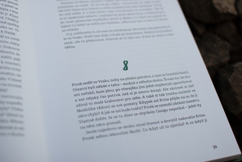 Knížka se mi moc líbila, dobře se četla a líbily se mi i hezké barevné celostránkové ilustrace. Líbila se mi hlavně ta část, kdy se Prcek s Krisou dostali do fantastické země, protože tam zažili hodně dobrodružství a museli překonávat různé překážky. Nejvíc se mi líbila postava Prcka. Na začátku knížky jsem mu moc nerozuměl, ale na cestě královstvím měl víc a víc odvahy a nakonec zmoudřel. Líbilo se mi taky jak se na konci odvážně postavil Gangu.
