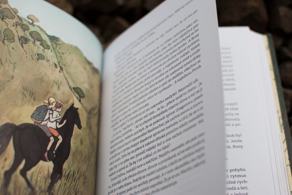 Na koni Ronym jedou královstvím a leccos se jim stane: potkají Ostnáče, hrozivé Brigovy loupežníky a spadnou do potoka. Po těchto nesnázích konečně docílí konce své cesty a od královny dostanou kámen z Oblázkové hory. Skočí s ním do studny Zapomnění a tak se dostanou domů. Úplně na konci knihy jedou Prcek, Krisa a její sestra Michaelka na prázdniny na venkov do Borovice.